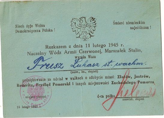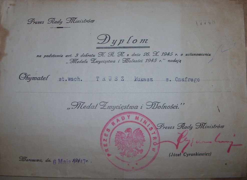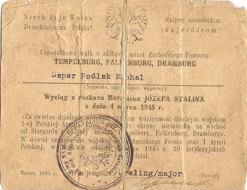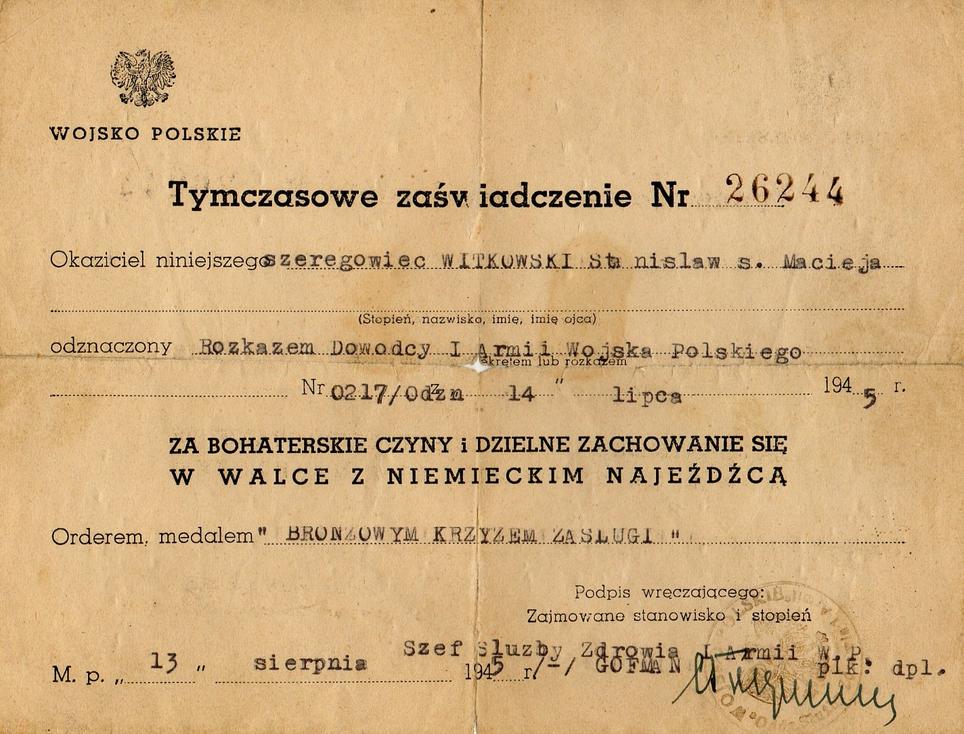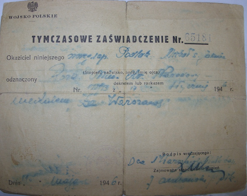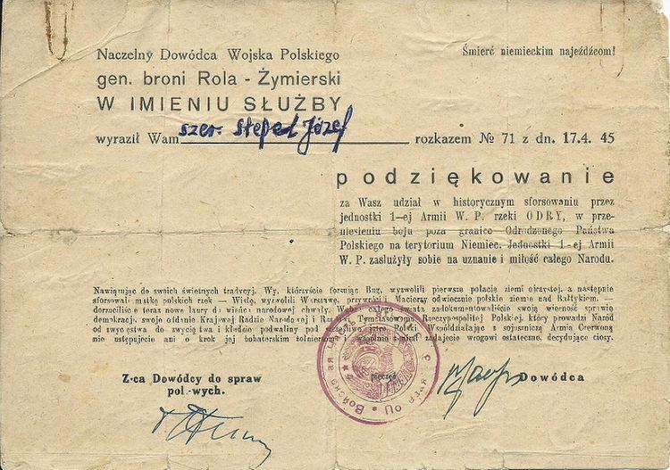 In this article the author describes the history of a Polish Award – Cross of Merit from it’s estblishement to the modern times, showing the examples of award-related documents from his archive. The text also discusses in short the use of the award (replicas) in re-enactment.