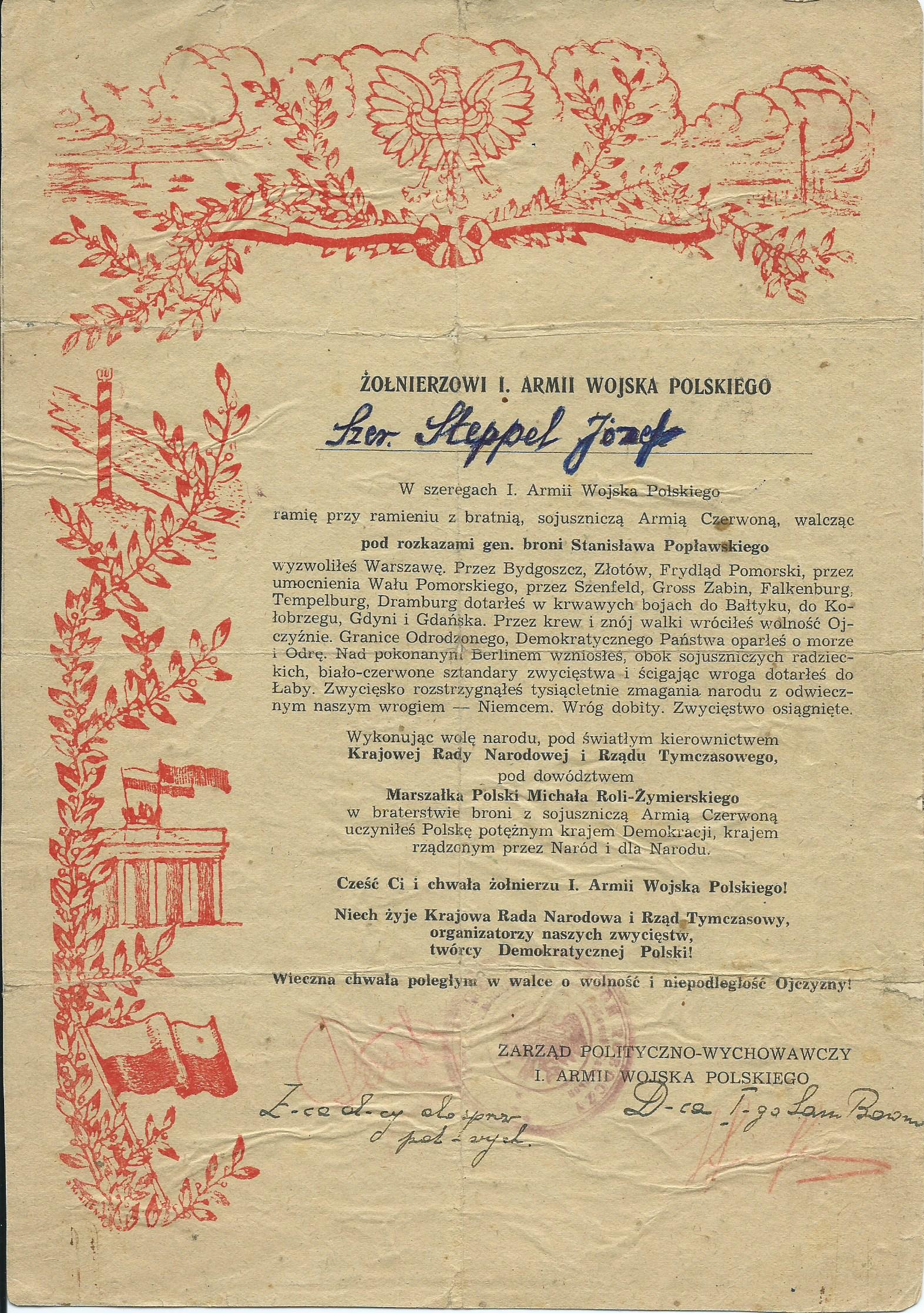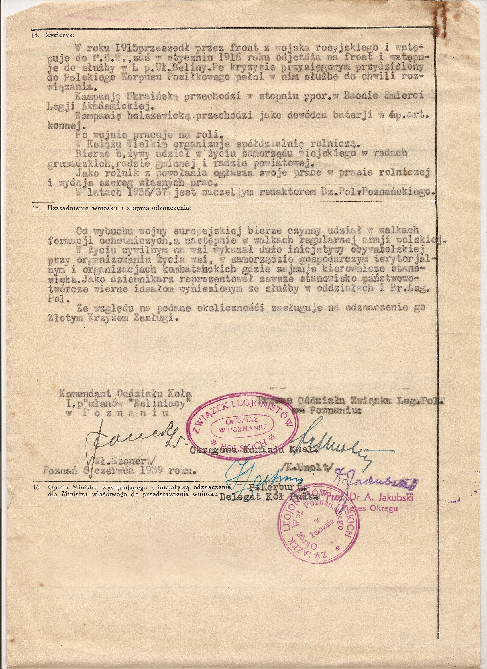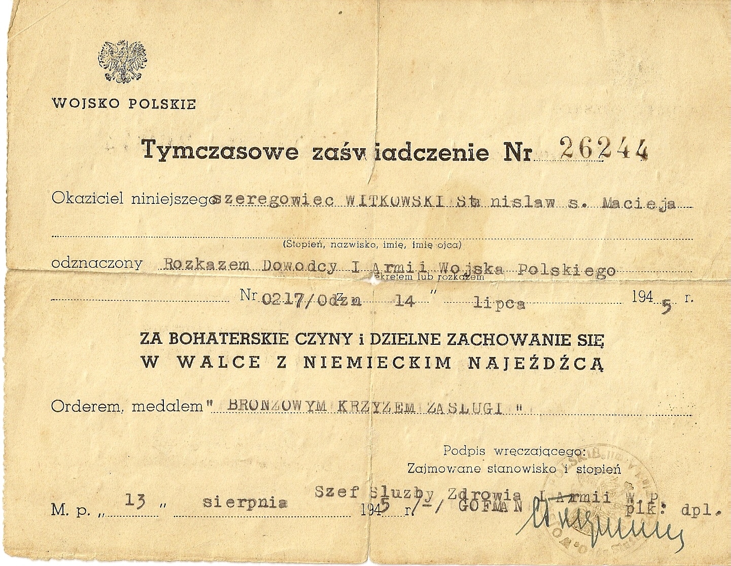 In this article the author describes the history of a Polish Award – Cross of Merit from it’s estblishement to the modern times, showing the examples of award-related documents from his archive. The text also discusses in short the use of the award (replicas) in re-enactment.