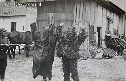 Radzieccy jeńcy (równie dobrze zdjęcie może być pozowane). Z lewej ameba z prawej strój z łyka – widać całkiem sporo materiału maskującego…