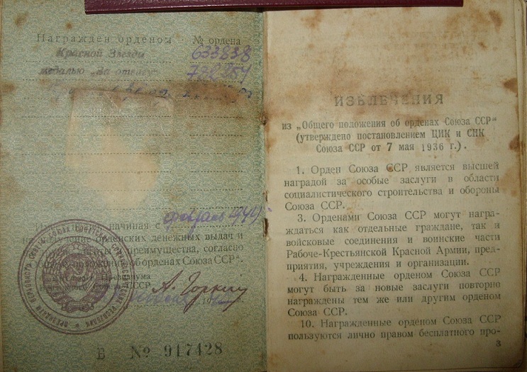Po trzecie, jeżeli nie możemy znaleźć informacji o odznaczeniu na powyższej stronie, lub znamy tylko numer odznaczenia, możemy spróbować poszukać w archiwach. Zajmuje się tym kilku specjalistów (lepszych lub gorszych), a cena takiego poszukiwania to zwykle ok.40$. Tu również służę pomocą i tłumaczeniem. Należy jednak pamiętać, ze informacji o żołnierzach wojsk NKWD nie znajdziemy w archiwum wojskowym.