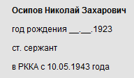 Nasz bohater nazywał się Nikołaj Zacharowicz Osipow. Był Rosjaninem urodzonym w 1923r. Prawdopodobnie przed wojną mieszkał w Obwodzie Nowosybirskim, gdyż do Armii Czerwonej został powołany przez Tjażeński Rejonowy Komisariat Wojskowy w Obwodzie Nowosybirskim i od 10 maja 1943r. Rozpoczął służbę w Armii Czerwonej. 23 czerwca tego roku został skierowany do 1 Frontu Ukraińskiego, jako zwiadowca baterii moździerzy 120mm 615 pułku strzeleckiego 167 Dywizji Strzeleckiej (w czasie drugiej wojny światowej zyskała miano Sumsko-Kijowskiej i była dwukrotnie odznaczona Orderem Czerwonego Sztandaru). Również w 1943r. został członkiem Komsomołu. 19 stycznia 1944r. został odznaczony po raz pierwszy – otrzymał wówczas medal „Za odwagę”. W uzasadnieniu napisano: