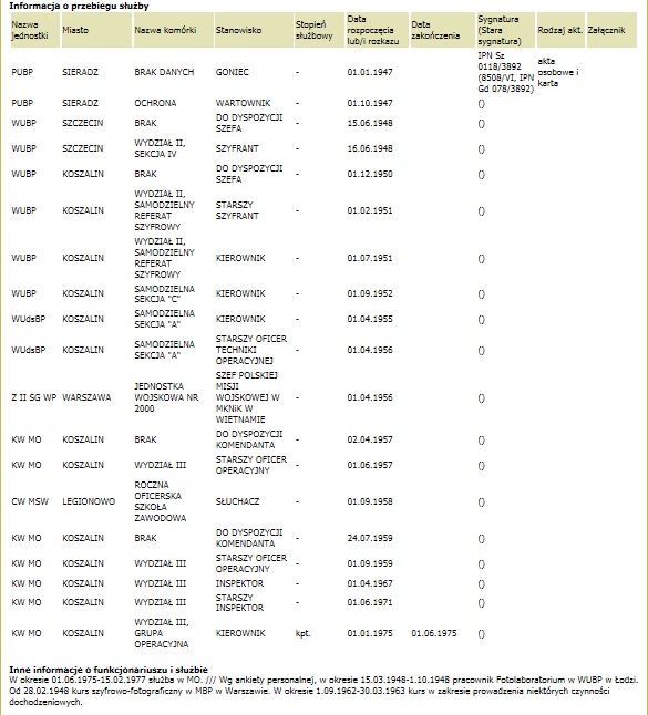 Na początek chciałbym przypomnieć stronę http://www.podvignaroda.ru, o której pisałem w pierwszej części niniejszego cyklu. Na stronie tej można znaleźć wnioski odznaczeniowe wraz z uzasadnieniem, które pozwalają nam nie tylko dowiedzieć się za co konkretny żołnierz radziecki (rzadziej: żołnierz którejś z sojuszniczych armii) otrzymał radzieckie odznaczenia wojskowe w latach 1941-45, ale również poznać kilka dodatkowych informacji na temat takiego żołnierza. W Polsce brak niestety witryny internetowej, którą można by uznać za odpowiednik, jednak istnieją przynajmniej dwie instytucje, które oferują na swoich stronach internetowych nieodpłatny wgląd w przebieg służby niektórych ludzi. Pierwsza z tych instytucji to Muzeum powstania warszawskiego które na swojej stronie oferuje krótkie biogramy powstańców, być może nie wolne od błędów i lakoniczne, ale pozwalające poznać bliżej np. właściciela Warszawskiego Krzyża Powstańczego. Drugą, i w tym momencie bardziej nas interesującą instytucją jest IPN. Odkładając na bok dyskusje o samej instytucji, trzeba przyznać, ze dostarczyła ona kolekcjonerom odznaczeń i dokumentów z epoki PRL wielce użytecznego narzędzia. Otóż na stronie http://www.katalog.bip.ipn.gov.pl/ znaleźć można informacje o: