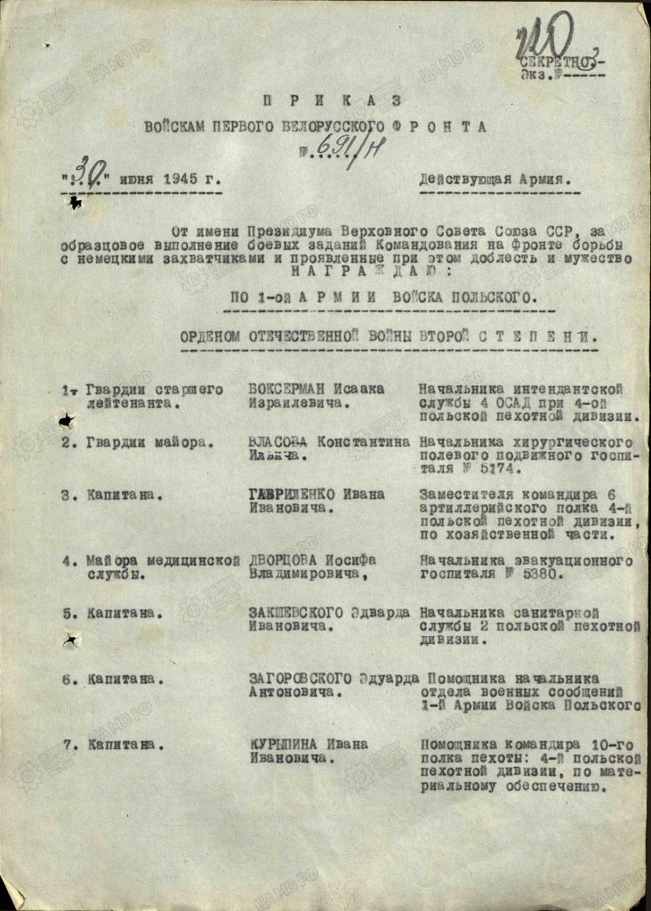 Order Wojny Ojczyźnianej II klasy. Według wniosku: