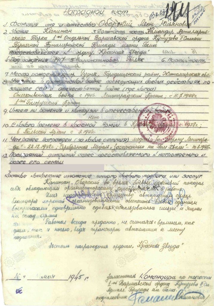 Oborski, syn Juliana. Jak wynika z odnalezionego w CA MO RF arkusza