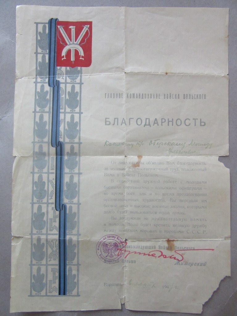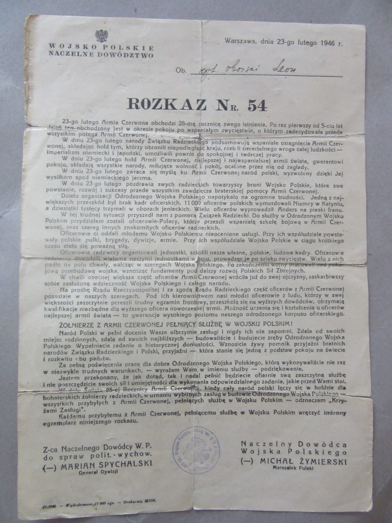jako oficera Armii Czerwonej, oddelegowano go do Wojska Polskiego – konkretnie