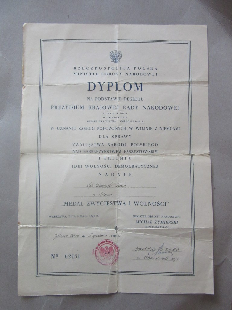 „Zwyciestwa i Wolności” oraz radzieckim medalem „Za zwycięstwo nad Niemcami w