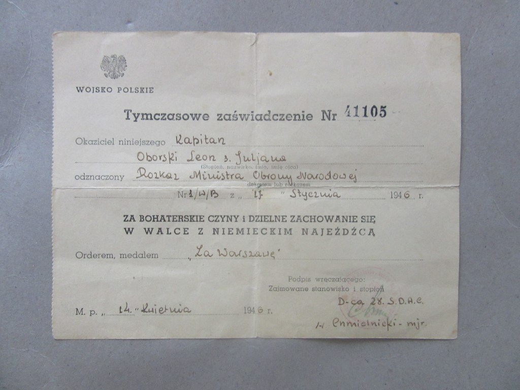 września Leon Oborski otrzymał awans na porucznika. W arkuszu brak także