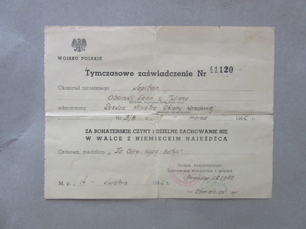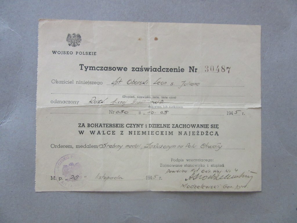 1944r., prawdopodobnie za sprawne zorganizowanie dowozu amunicji.