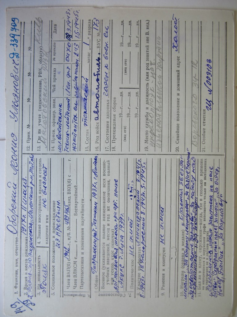 jednak odnaleźć daty awansu. Radziecki arkusz ewidencyjny awansu tego nie