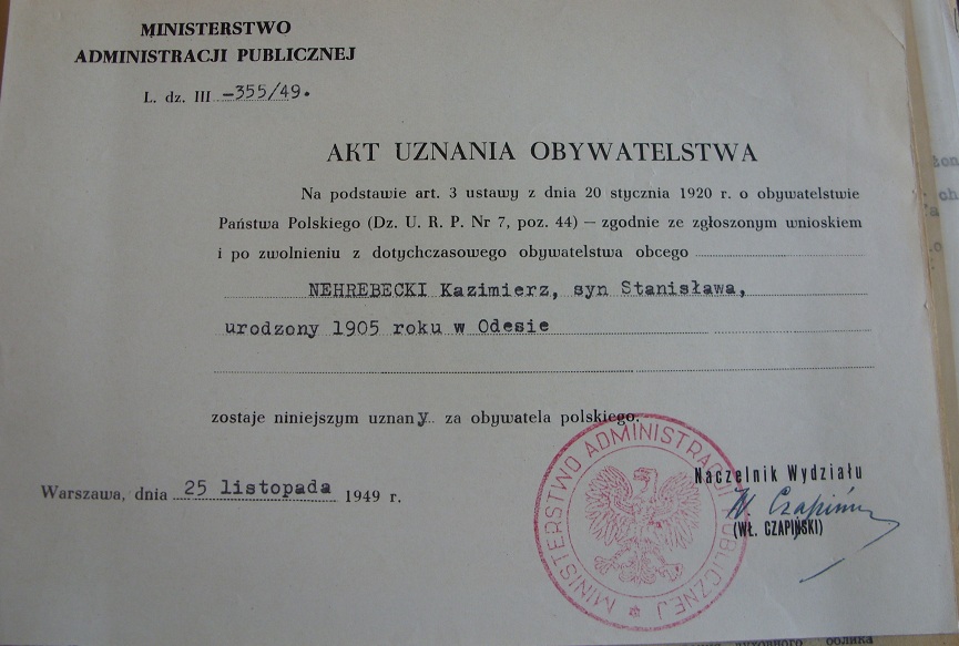 wspomniałem wcześniej) rozpoczął starania o przyznanie polskiego obywatelstwa i