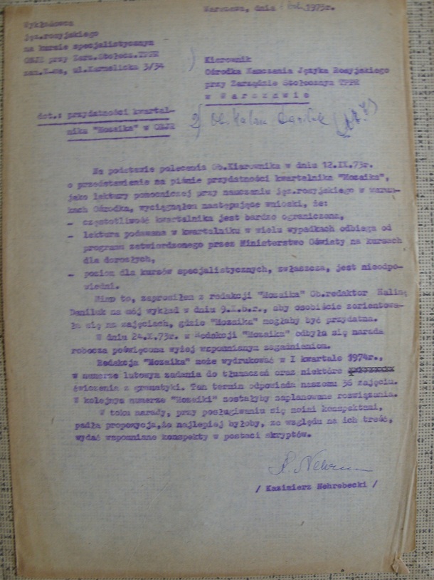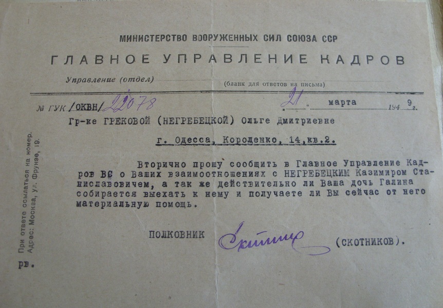 marca tego roku pochodzi powtórne zapytanie do Olgi Grekowej, o którym