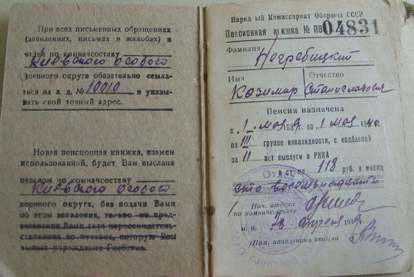 zachowana książeczka rencisty wojskowego-inwalidy III stopnia wydana została