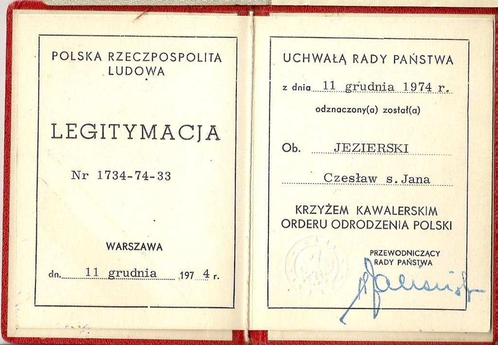 odznaczony Orderem Czerwonej Gwiazdy za wysługę lat. Niestety, nigdzie nie