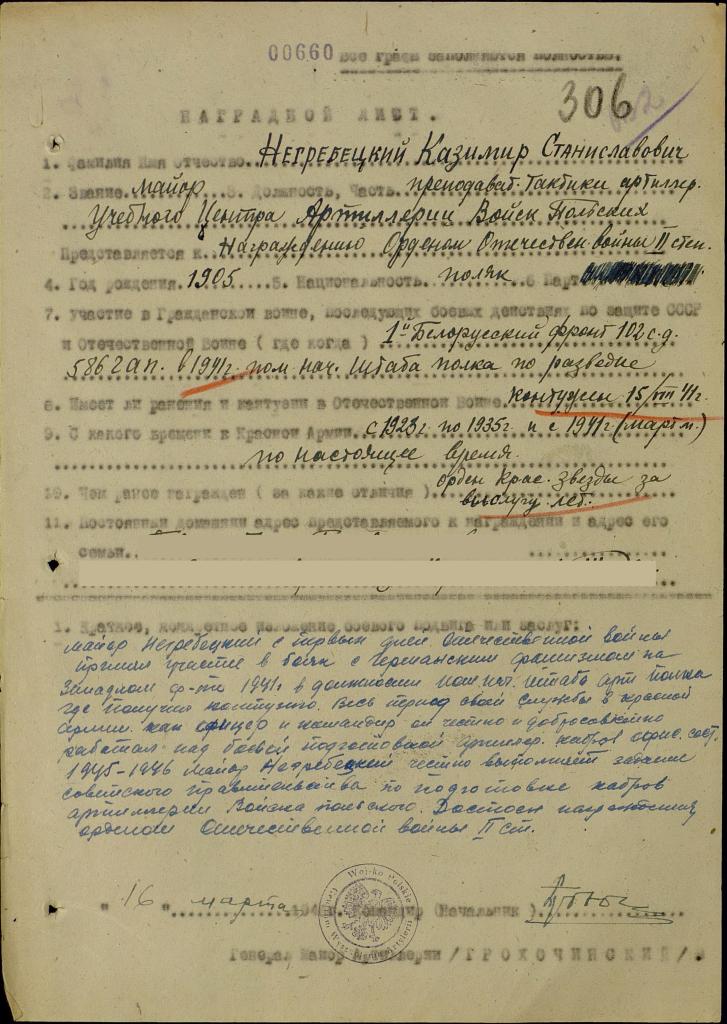 [W latach] 1944-1946 Major Nehrebecki rzetelnie wykonuje zadanie wyznaczone