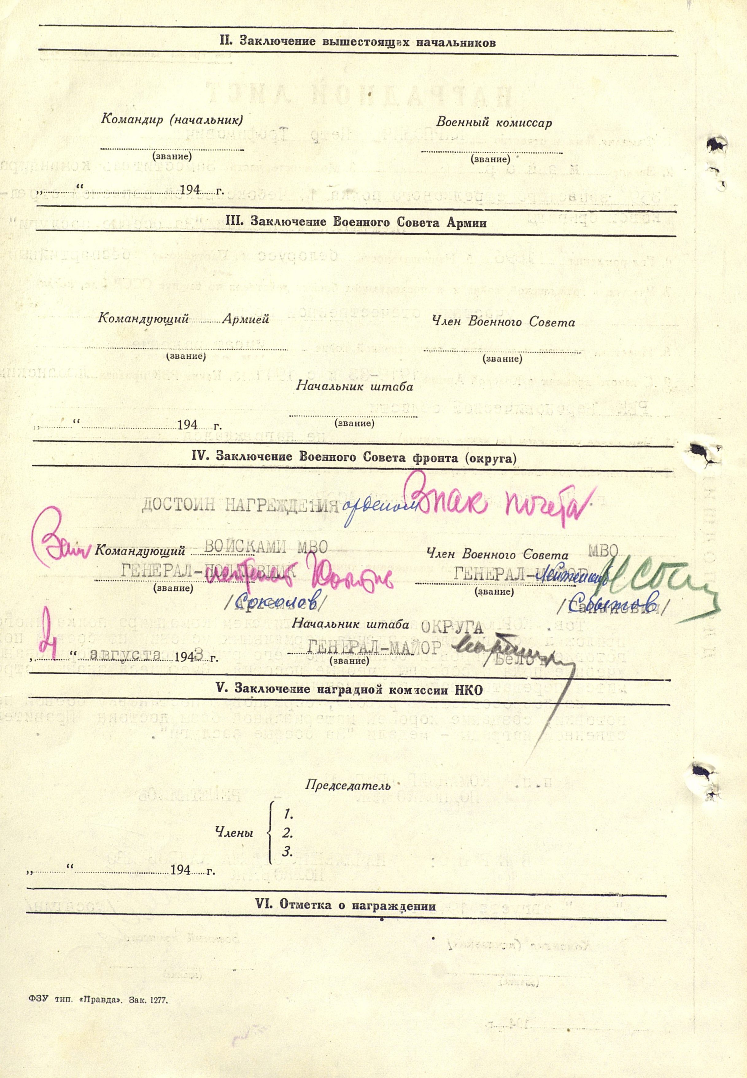 – Order Czerwonej Gwiazdy – nadany 03.11.1944r. (a więc już w trakcie służby w 18pp) za wysługę lat (15);