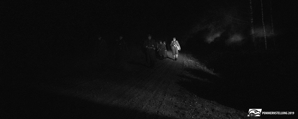 Mijają kolejne kwadranse, trakt jest prosty jak strzelił i nic się nie dzieje. Z nudów liczę kolejne odchodzące na boki przecinki, później zaczynam liczyć parokroki. Wreszcie spotykamy grupę niemiecką, jej dowódca deklaruje, że od tej pory to oni będą szli na końcu. No i fajnie, można trochę przyspieszyć. Idziemy i idziemy, płyną kwadranse i godziny, wyprzedzamy grupy i pojedynczych żołnierzy… Po drodze są dwa postoje, na których wychodzimy mocno przed odpoczywającą kolumnę i zalegamy w przydrożnym rowie. Wreszcie docieramy do pierwszych zabudowań wioski, przez którą prowadzi ulica oświetlona latarniami. Nie obchodzimy jej, tylko wbijamy prosto przez środek. W pewnym momencie łapiemy się na tym, że parami przebiegamy mocniej oświetlone odcinki, przeskakując od cienia do cienia. Wreszcie wieś się kończy i zaczyna asfaltowa szosa. Podkute buty nieprzyjemnie zgrzytają, robiąc hałas na pół pommernstellungu, ale za to jest z górki i można troszkę podgonić. Chłopaki zgadzają się ze mną – nie ma na co czekać, każda zmitrężona w drodze minuta, to minuta mniej spania.