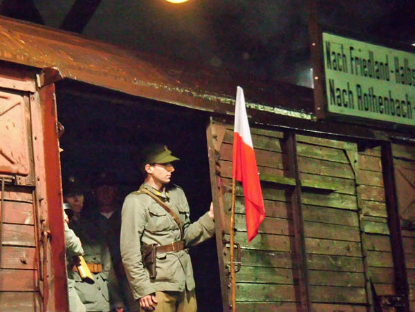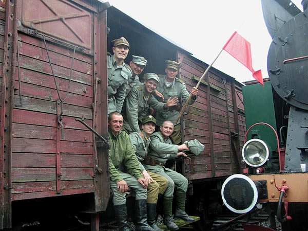 Nasi rekonstruktorzy przyjechali do muzeum w piątek późnym wieczorem i zajęli się przygotowaniem noclegu w zabytkowym, tzw. „bydlęcym”, wagonie kolejowym typu Kdn. Możliwość takiego noclegu zastrzegliśmy sobie jeszcze w fazie pierwszych uzgodnień, wzbudzając tym spore zdumienie organizatorów. Na podłodze wagonu – który miał następnego dnia grać jedną z głównych ról w inscenizacji – rozłożyliśmy słomę, na którą poszły płaszcze-namioty. Wnętrze rozświetlała ciepłym blaskiem naftowa lampa i można powiedzieć, że zrobiło się po prostu przytulnie. Nie za bardzo chciało się spać, dlatego wybraliśmy się na zwiedzanie muzealnych bocznic – całe rzędy milczących lokomotyw i wagonów robiły w nocnej scenerii niesamowite wrażenie.