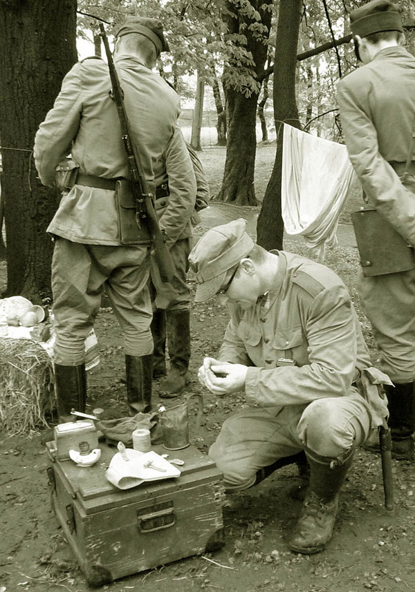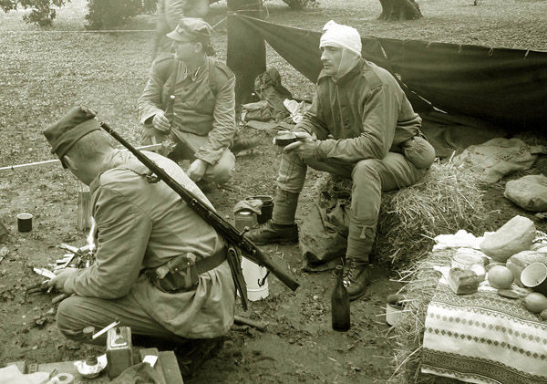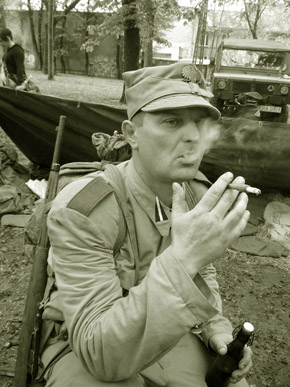 Inscenizacja walk z frontu wschodniego kończyła całą imprezę. Odtwarzała sytuację z samego końca wojny, kiedy żołnierze polscy, radzieccy i czescy (bo trzeba wspomnieć, że w imprezie brali udział także rekonstruktorzy z Czech) wpadają w zasadzkę przygotowaną naprędce przez improwizowany oddział niemiecki na obszarze już po przejściu frontu. Nasza grupa wmaszerowała na teren inscenizacji w szyku marszowym, ciężkim krokiem i zwieszonymi głowami, zmęczonymi głosami śpiewając „Rozmaryn”. Nagle odezwał się niemiecki karabin maszynowy, padły pierwsze strzały, straciliśmy pierwszych zabitych. Po nieudanej próbie ataku wycofaliśmy się do ruin budynku i wezwaliśmy na pomoc oddział radziecki. Po dłuższej walce górę wzięli jednak Niemcy, którzy ostatecznie zlikwidowali wszystkich swoich przeciwników.