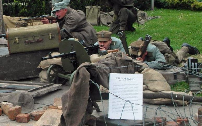 Przywieźliśmy całą przyczepę pełną cegieł, kawałków betonu, starych drewnianych okien, popalonych desek, skrzyń, kolczastego drutu. Pogniecione kanistry, dziurawy niemiecki hełm, jeden but, podarty radziecki szynel i sztuczna krew pozwoliły zrobić całkiem niezłe tło. Do tego worki z piaskiem, ckm, lorneta nożycowa, przedwojenna walizka i różne drobiazgi. No i jeszcze opis, pokazujący zwiedzającym, na co tak właściwie patrzą.