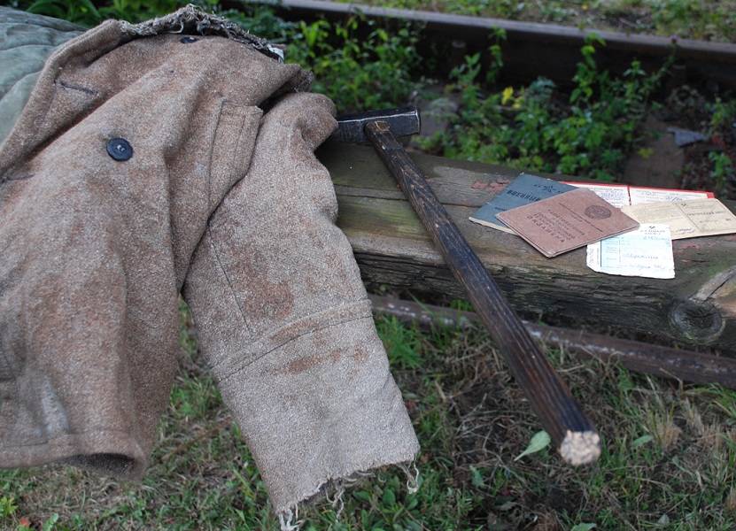 Prezentowana sylwetka to właśnie typowy szeregowy pracownik kolei – robotnik taborowy zatrudniony w Połtawskich Zakładach Remontu Taboru Kolejowego – przywracanych do użytku po odbiciu miasta z rąk Niemców półtora roku wcześniej.