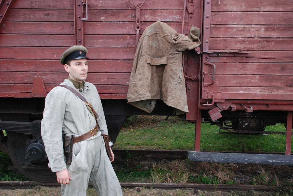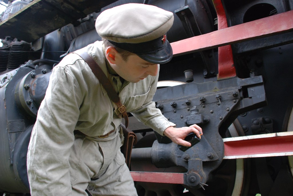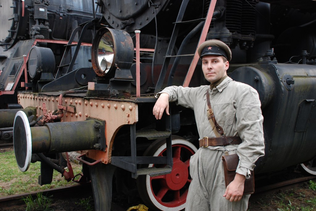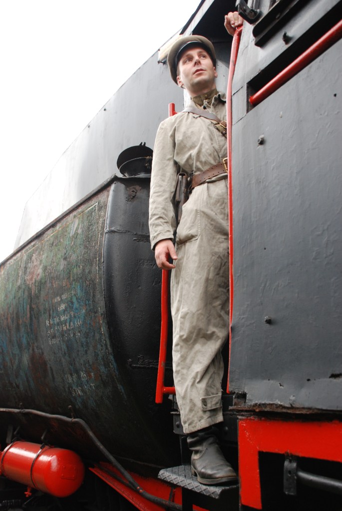 Prezentowana sylwetka to lejtnant radzieckich wojsk kolejowych. Ubiór stanowi standardowy polowy mundur oficerski wz.43, na którym oficer nosi kombinezon roboczy. Na głowie oficera – czapka służbowa z czarnym otokiem i niebieską lamówką. Czapka została pozbawiona podpinki, gdyż podczas pracy parowozu temperatura w kabinie bywa na tyle duża, że ta mogłaby się stopić. Jako obuwie nosi oficerki ze skóry juchtowej. Oporządzenie stanowi pas oficerski z koalicyjką, kabura na pistolet oraz podoficerska raportówka – w służbach tyłowych często wydawana zamiast oficerskich mapników. Uzbrojenie oficera stanowi pistolet TT, choć w wojskach kolejowych częściej oficerom wydawano rewolwery Naganta.