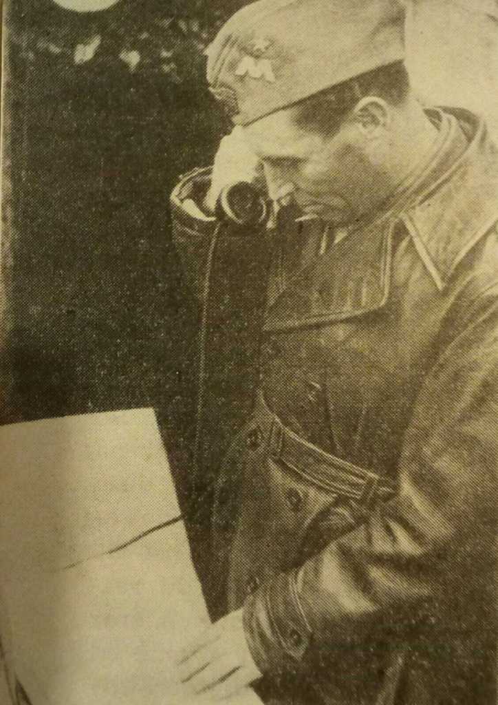 Zdj. 9 – Por. Leon Majmeskułow w kurtce z otwartym kołnierzem, tu akurat prawdopodobnie niemieckiego pochodzenia. Warto zwrócić uwagę na cywilny krawat. (“Na drodze stał Kołobrzeg”)