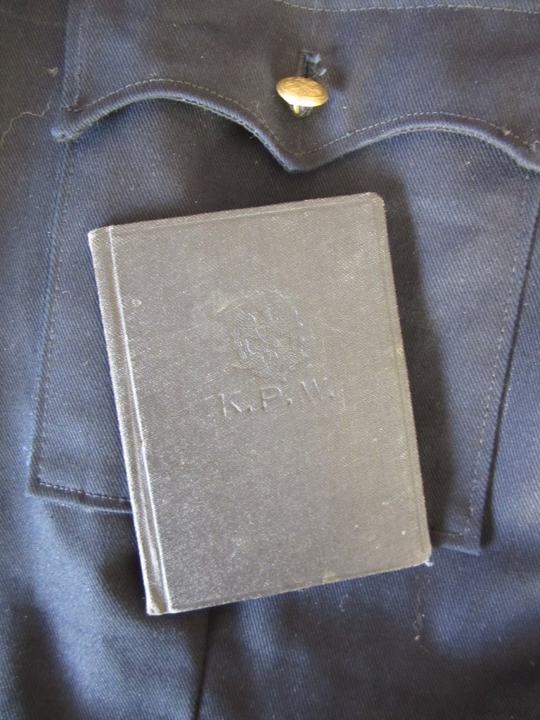 „W końcu maja zaczęto wydawać oficerom polskie mundury oraz czapki rogatywki. Mundury były drelichowe, szarego koloru [podkreślenie moje – K.S.] z naramiennikami z sukna koloru khaki.”[4]
