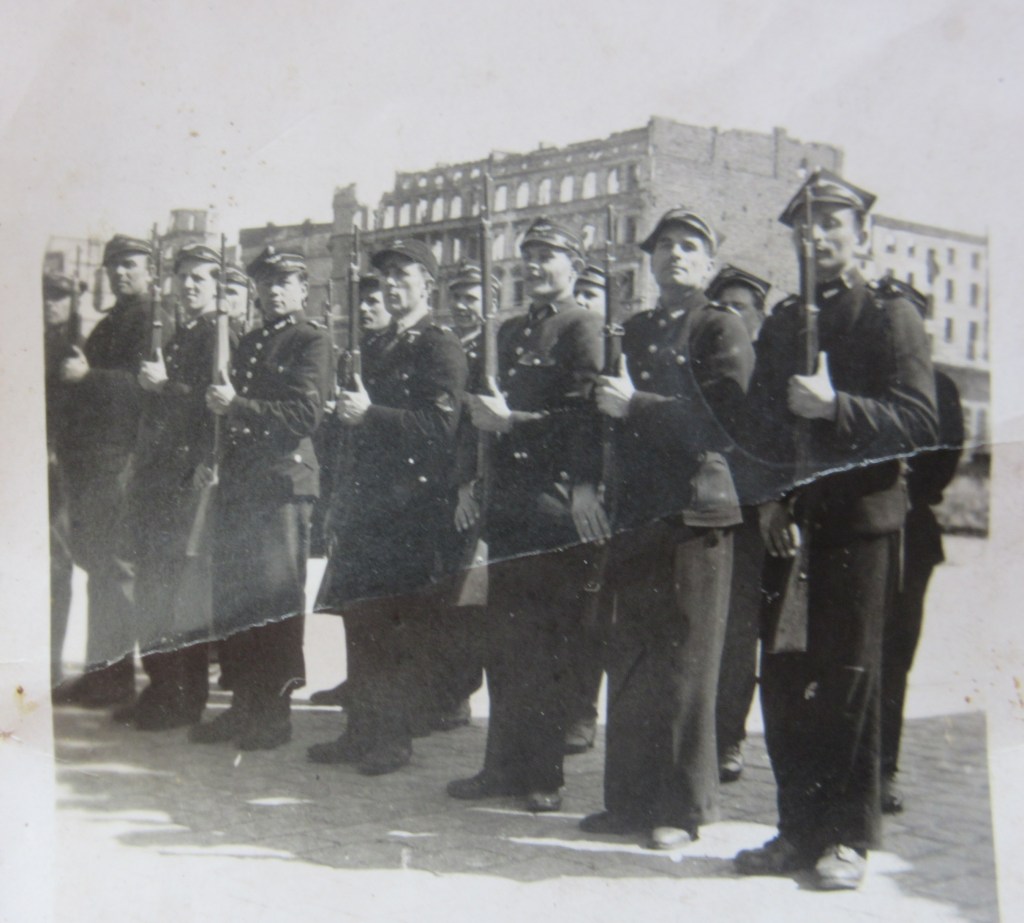 Zdj. 8 – Stanisław Olechnowicz, weteran 1pp, tu jako oficer 9pp w nieregulaminowej kurtce typu frencz – prawdopodobnie niemieckiego pochodzenia (“Na drodze stał Kołobrzeg”)