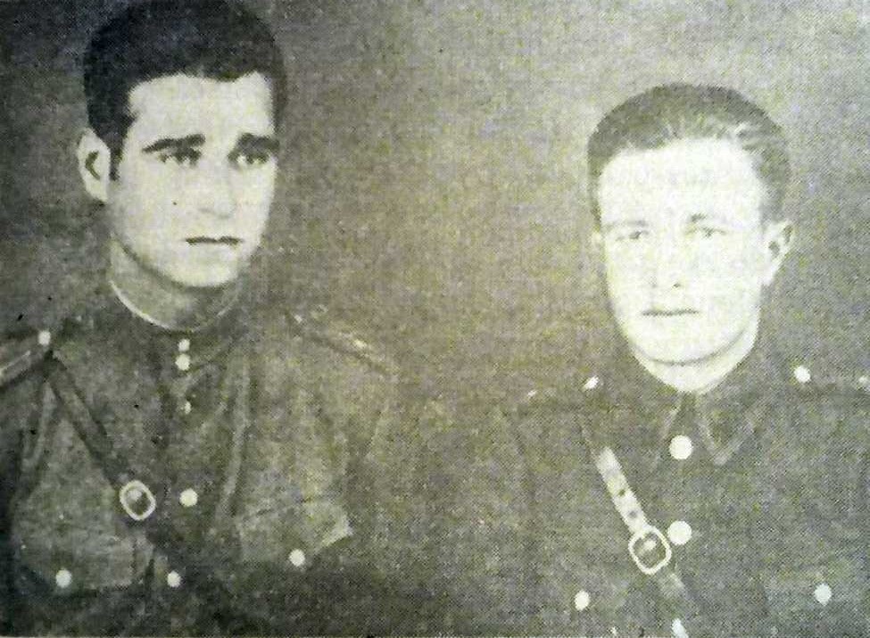 Zdj. 3 -Saperzy 6dp Michał Oleksiuk i Jerzy Droń. Michał Oleksiuk nosi radziecka gimnastiorkę wz.35 (!) – element umundurowania, który nigdy nie był wydawany w WP. Zdjęcie z książki “Na Drodze stał Kołobrzeg”.