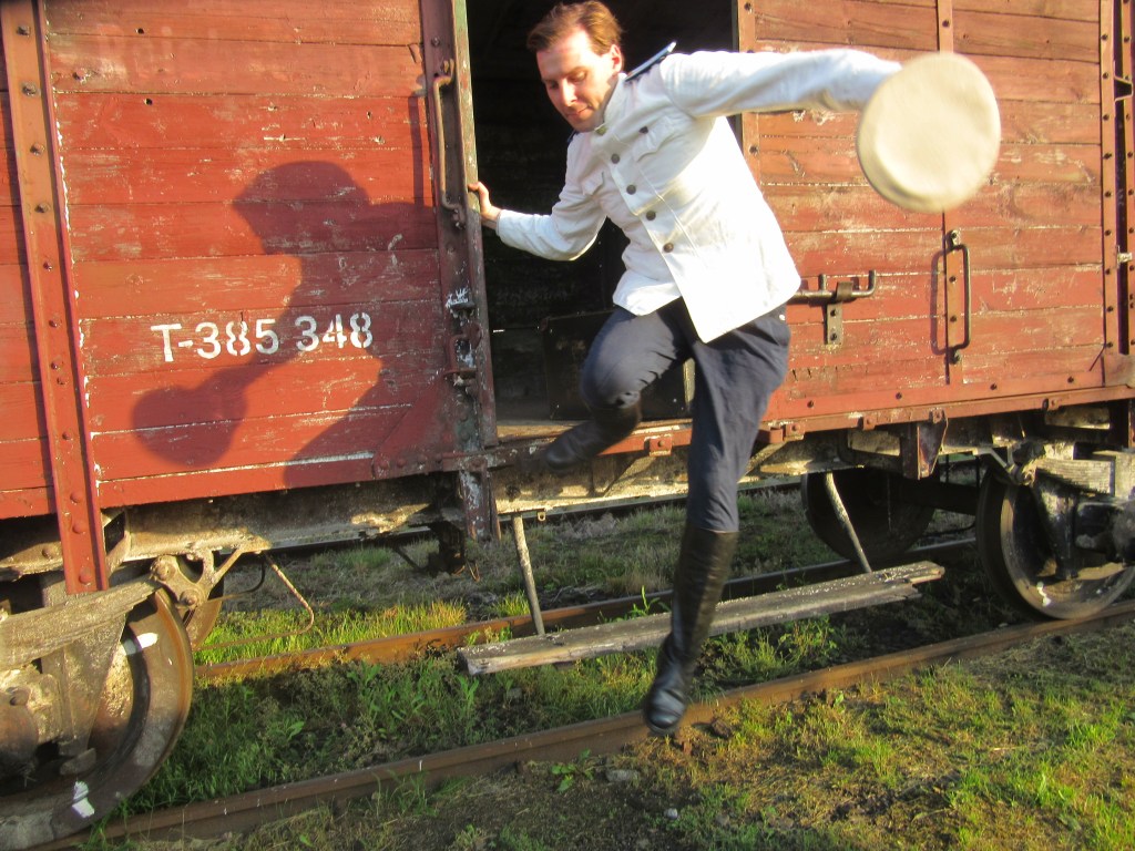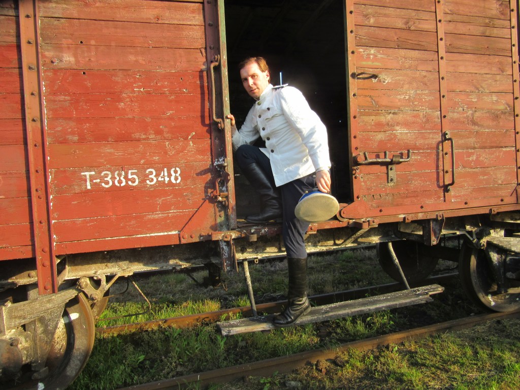 Gdy usłużny jerajtor otworzył drzwi wagonu, Kostia zeskoczył i założył czapkę. Oczywiście pociąg jak zwykle zatrzymał się poza peronem, więc skacząc omal nie skręcił sobie kostki, zdołał jednak złapać równowagę i życząc żołnierzom by bili hitlerowców dzielnie, odebrał podaną mu walizkę.