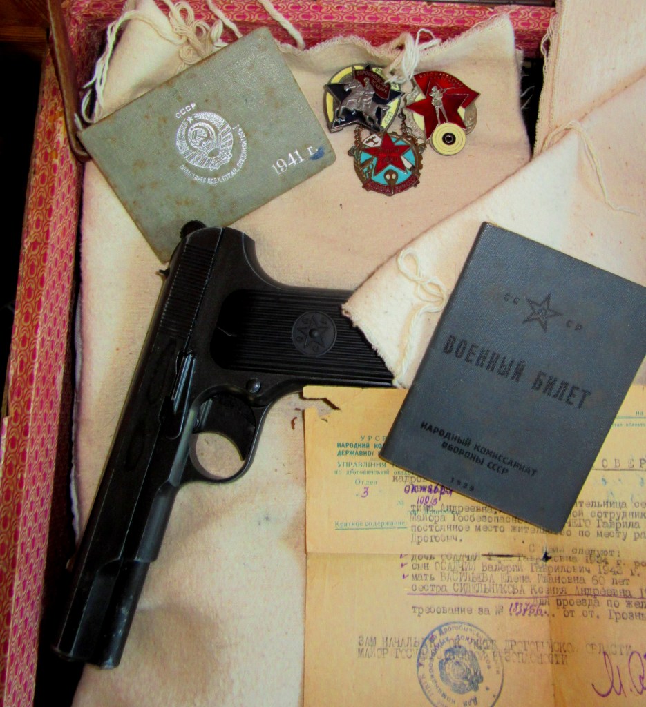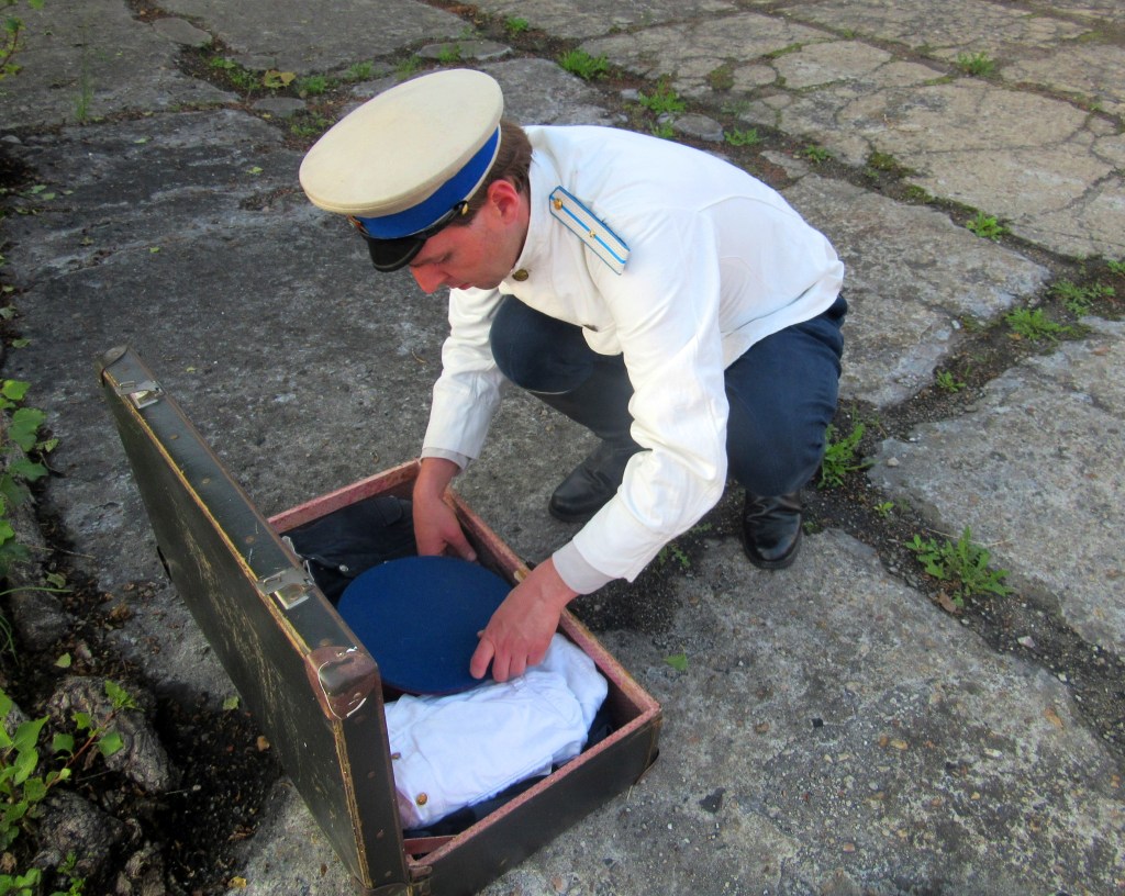 W zwykłej fibrowej walizce oficer przewozi swój skromny dobytek – czapkę służbową, gimnastiorkę (dla szeregowych) granatową i gimnastiorkę letnią; broń wydaną na czas podróży – pistolet TT, nieco odzieży cywilnej, przybory do pisania, dokumenty – legitymację, książeczkę wojskową i rozkaz wyjazdu – oraz odznaki uzyskane w toku działalności w Osoawiachimie – „Woroszyłowski Strzelec” i „Woroszyłowski jeździec” oraz „Gotów do obrony przeciwlotniczej i przeciwchemicznej”.