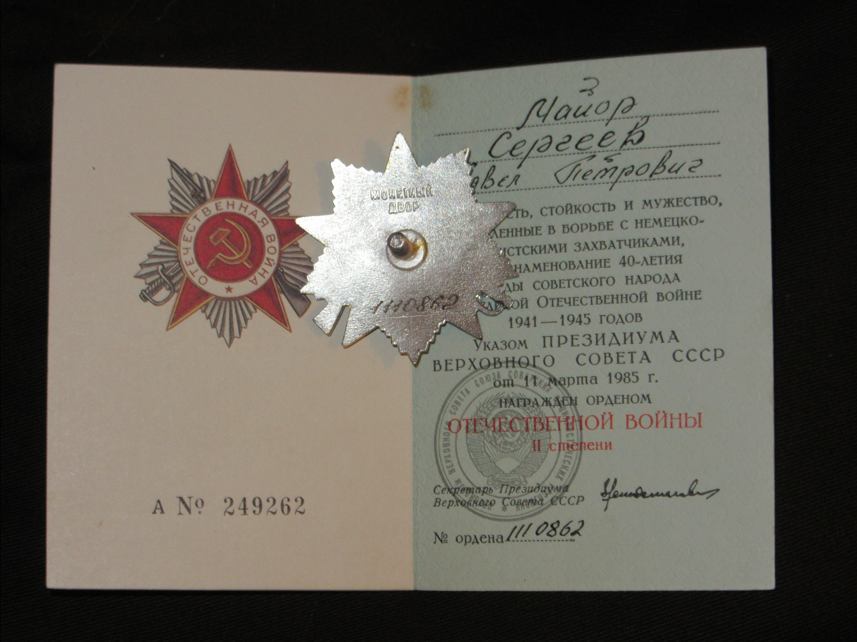 Order Wojny Ojczyźnianej II klasy – 1985r.