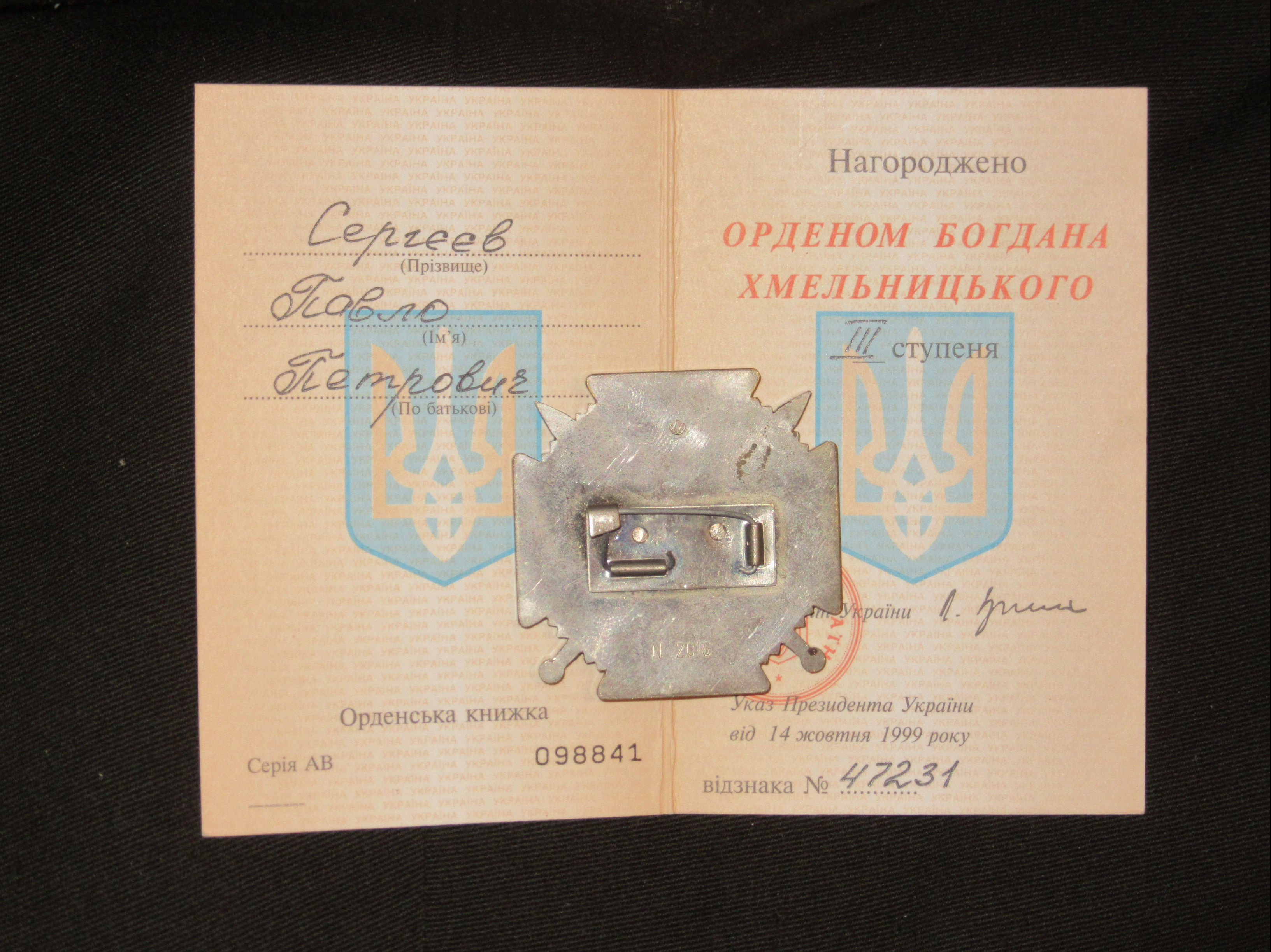 Order Bogdana Chmielnickiego III klasy (nr 2016) – 1999r.
