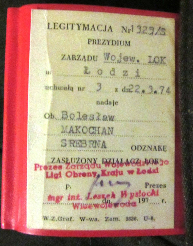 Srebrna Odznaka „Zasłużony działacz LOK” – 1974r.