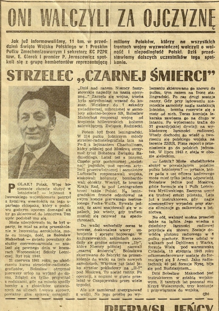 Wycinek prasowy przedstawiający wojenną historię Bolesława Makohana