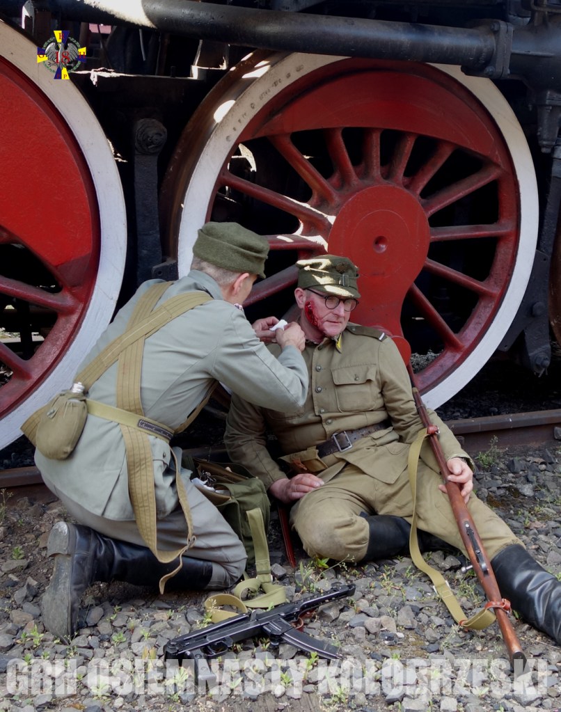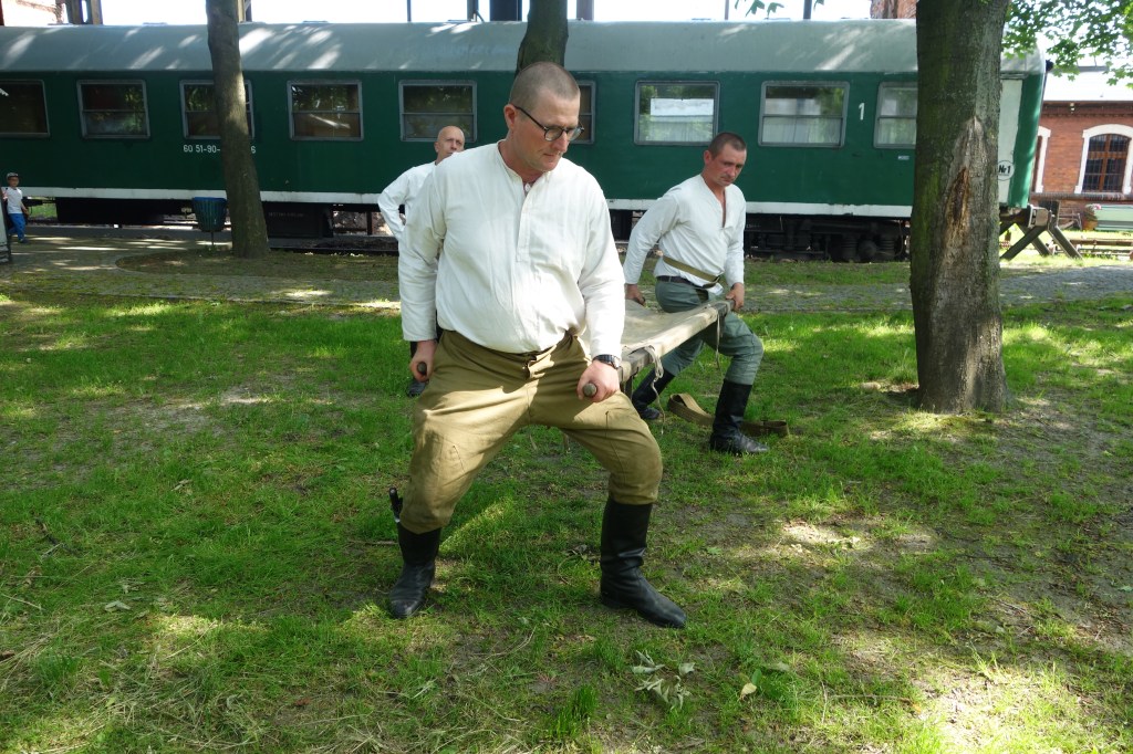 Po tym bloku zajęć i krótkiej przerwie przerobiliśmy także materiał z zakresu działania drużyn sanitarnych według instrukcji wojennych. Przećwiczyliśmy stałe elementy, takie jak opatrywanie ran, czy wykorzystanie pasów noszowych.
