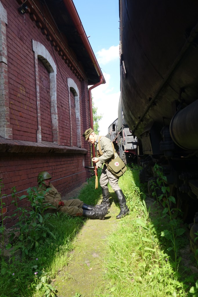Następnego dnia, przed otwarciem muzeum dla zwiedzających odbyliśmy krótkie zajęcia praktyczne z zasad walki w terenie miejskim. Niepowtarzalne plenery pozwoliły przez chwilę poczuć się jak podczas walk o kołobrzeską parowozownię.