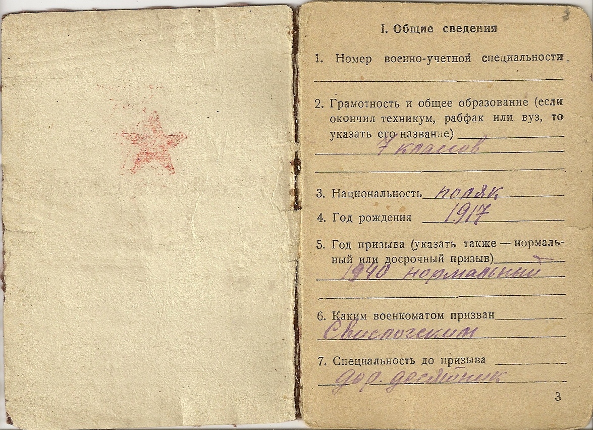 W styczniu 2025 udało się pozyskać brakującą stronę z książeczkiczerwonoarmisty:
