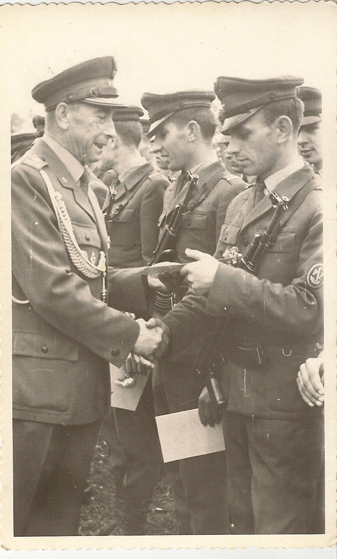 Odznaczenie żołnierzy pułku Krzyżami Zasługi, obok ppłk. Dyryndy jego poprzednik na stanowisku dowódcy pułku, płk. Okuniewski.