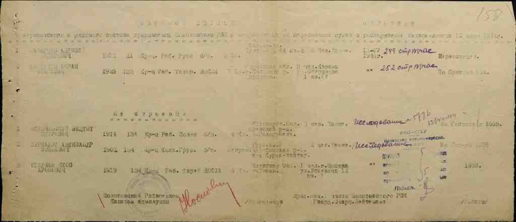 W dokumentach nie ma informacji o służbie w Armii Czerwonej przed wojną, która powinna przypadać na lata 30. Prawdopodobnie zatem z jakichś przyczyn nie został powołany, lub też żaden z wojskowych urzędników nie odnotował tego faktu. Również w 1941r. Nie trafił do Armii Czerwonej – prawdopodobnie postępy niemieckie były zbyt szybkie, by zdążył zostać zmobilizowany.