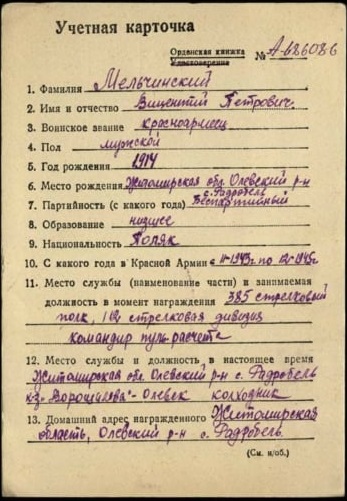 Prawdopodobnie, gdyby nawet przekopać wszelkie archiwa cywilne, nie uda się dowiedzieć wiele więcej o Wincentym Mielczyńskim. Był jednym z wielu anonimowych Polaków-obywateli ZSRR. Miał może nieco więcej szczęścia. Ominęła go najwyraźniej „operacja polska”, zdołał przeżyć wojnę i wrócić w rodzinne strony. Czy w czasie wojny zobaczył Polskę? A może jednostkę, do której trafił latem 1944r. Skierowano gdzie indziej? Może w ogóle już do końca wojny pełnił służbę na tyłach? Tego się, niestety, nie dowiemy.