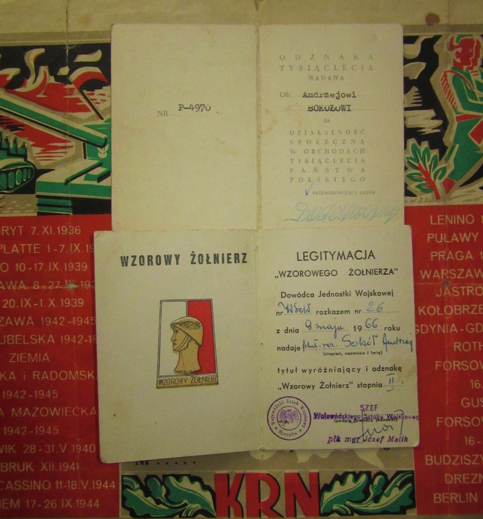 Ponieważ książeczka wojskowa nie wspomina o ćwiczeniach po wojnie, pewną zagadką pozostaje legitymacja odznaki „Wzorowy Żołnierz” drugiej klasy nadana przez Wojewódzki sztab Wojskowy w Rzeszowie w 1966r. Data dzienna – 9 maja, Dzień Zwycięstwa i Wolności – pozwala przypuszczać, że nadanie to było raczej dodatkową formą uhonorowania weterana. Tym bardziej, że jako stopień figuruje „plutonowy rezerwy”.
