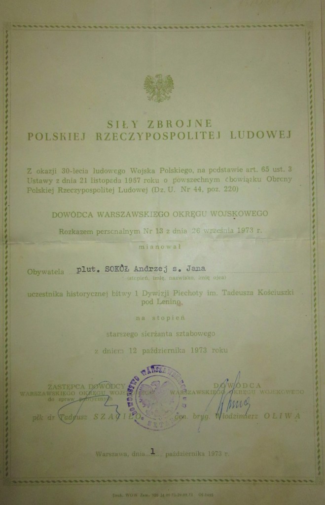 W październiku 1973r. został mianowany starszym sierżantem sztabowym.