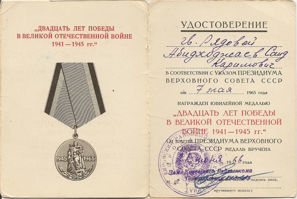 Co ciekawe, gdy 17 maja 1945r. otrzymał nową książeczkę czerwonoarmisty, jako stanowisko wpisano mu „felczer”. De facto było to stanowisko oficerskie. A jednak mimo kwalifikacji, Said Abidchodżajew pozostawał szeregowym i nie zmieniło się to już do końca jego służby wojskowej.