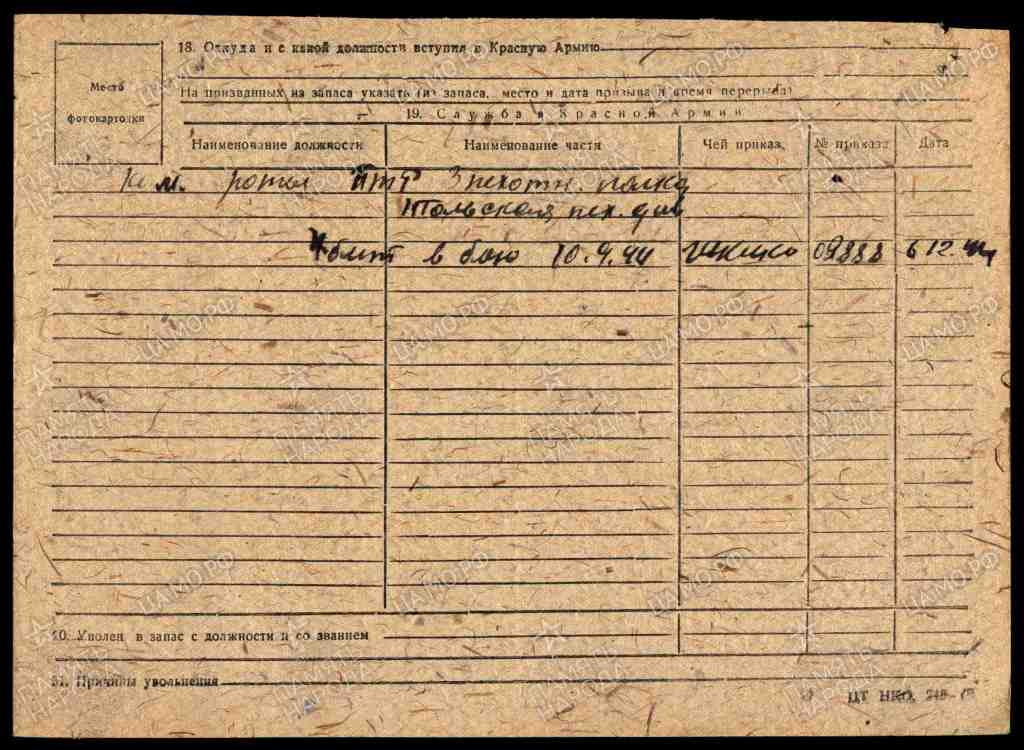 Służba w 73 pułku zapasowym 19 Zapasowej Brygadzie Strzeleckiej (Armii Czerwonej) przed kwietniem 1943r.(?)