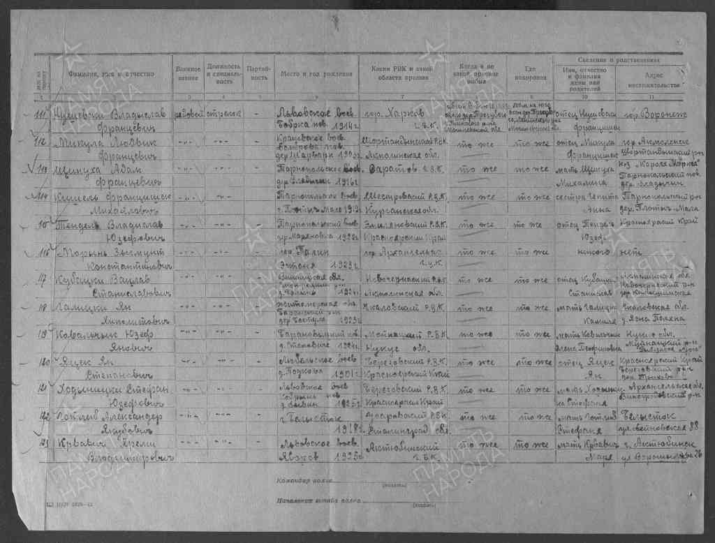 Data i miejsce urodzenia: 21.11.1907r., wieś Dworiec (Dworzec), Rejon Łuniniecki, Gubernia Mińska, Cesarstwo Rosyjskie