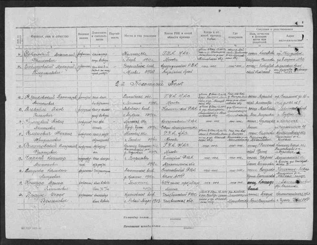 Lista oficerów do wykreślenia ze spisów w wojenkomatach (na pozycji 2)