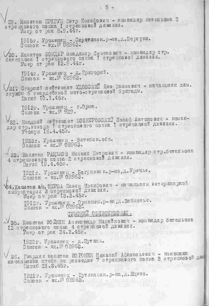 Opracowano na podstawie książki „Początek drogi. Lenino” A. Srogi oraz na podstawie dokumentu w zbiorach autora.
