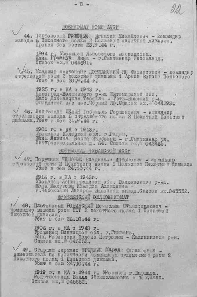 22.06.1941r. – zgłosił się na ochotnika do Armii Czerwonej.