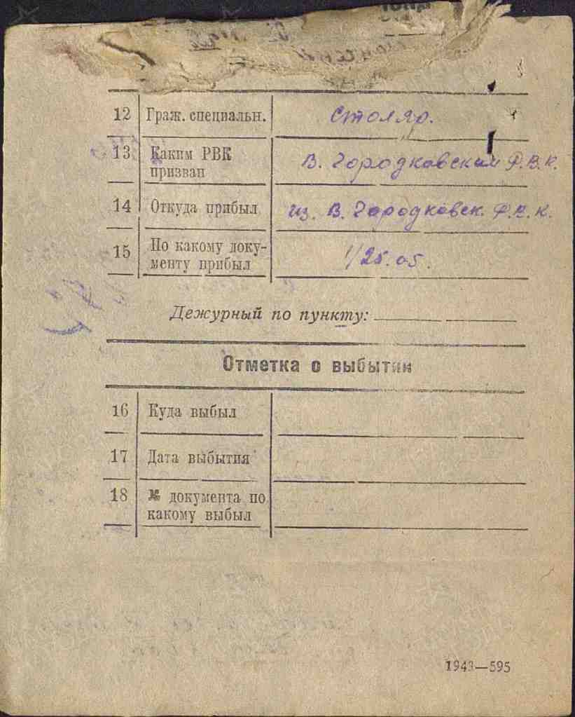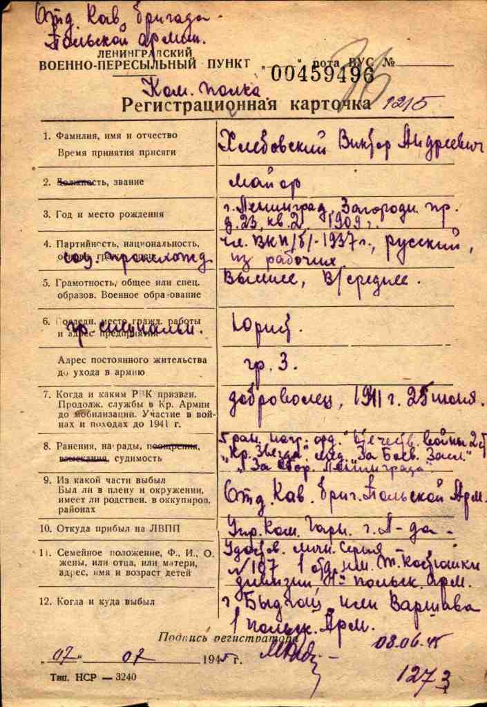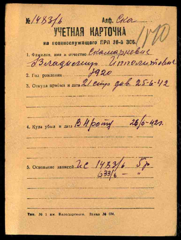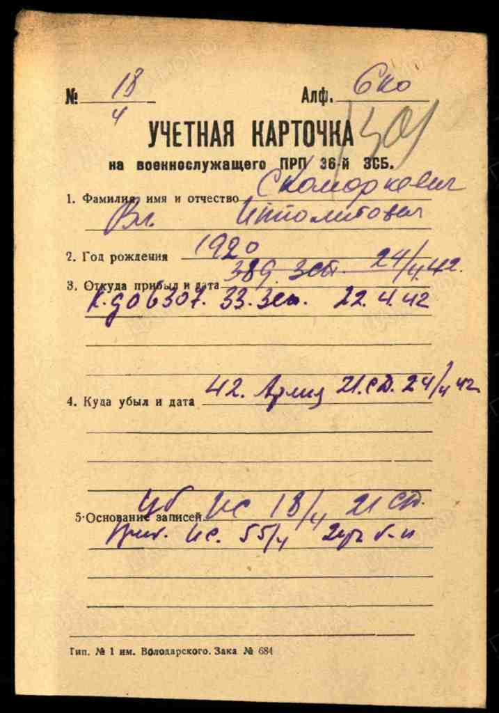 30.08.1941r. Skierowany do 1pułku strzeleckiego 1 Leningradzkiej Brygady Ozdrowieńców.